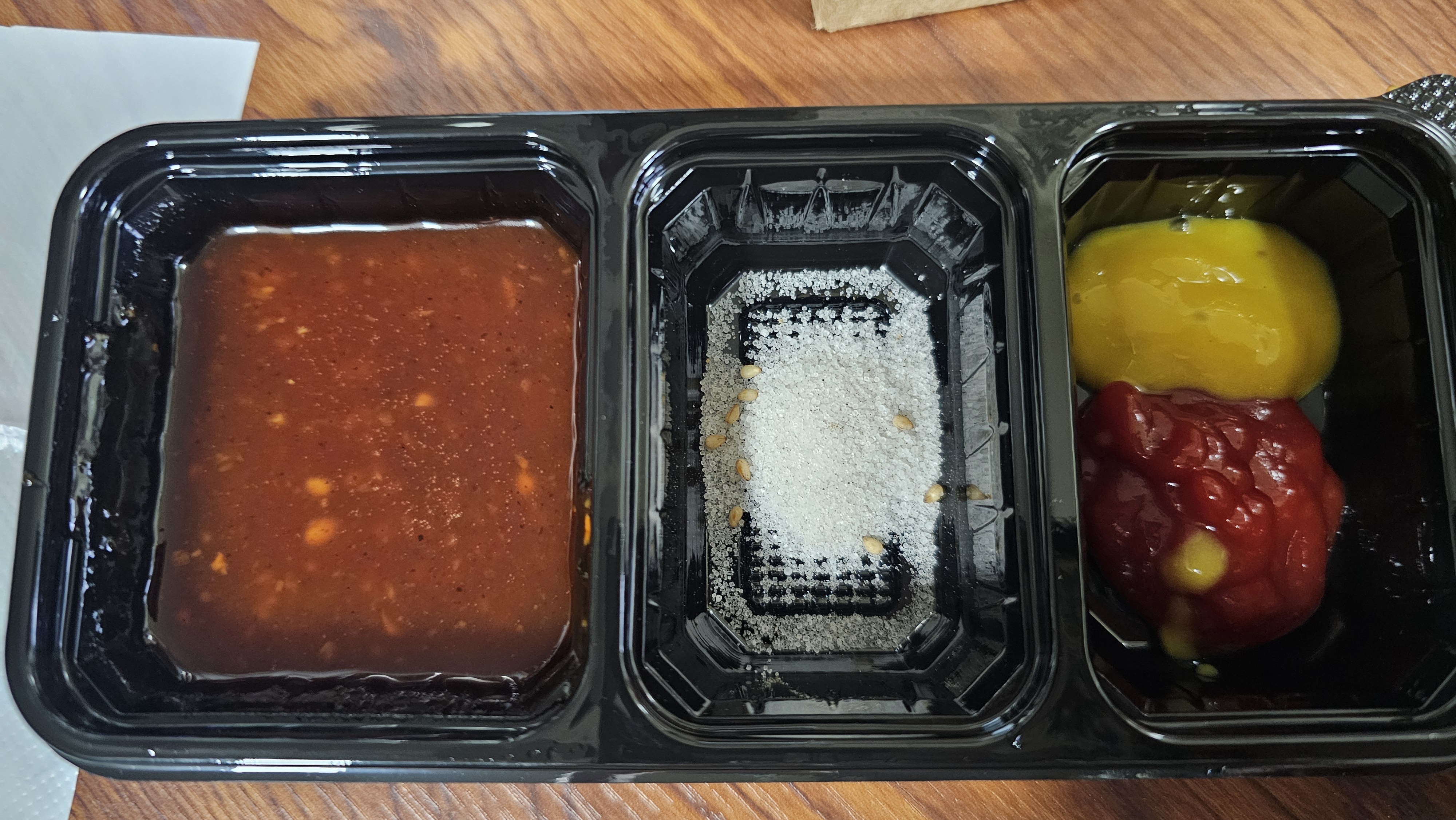 기본 소금, 양념소스, 케찹까지 알차게 잘 챙겨주셨더라고요.