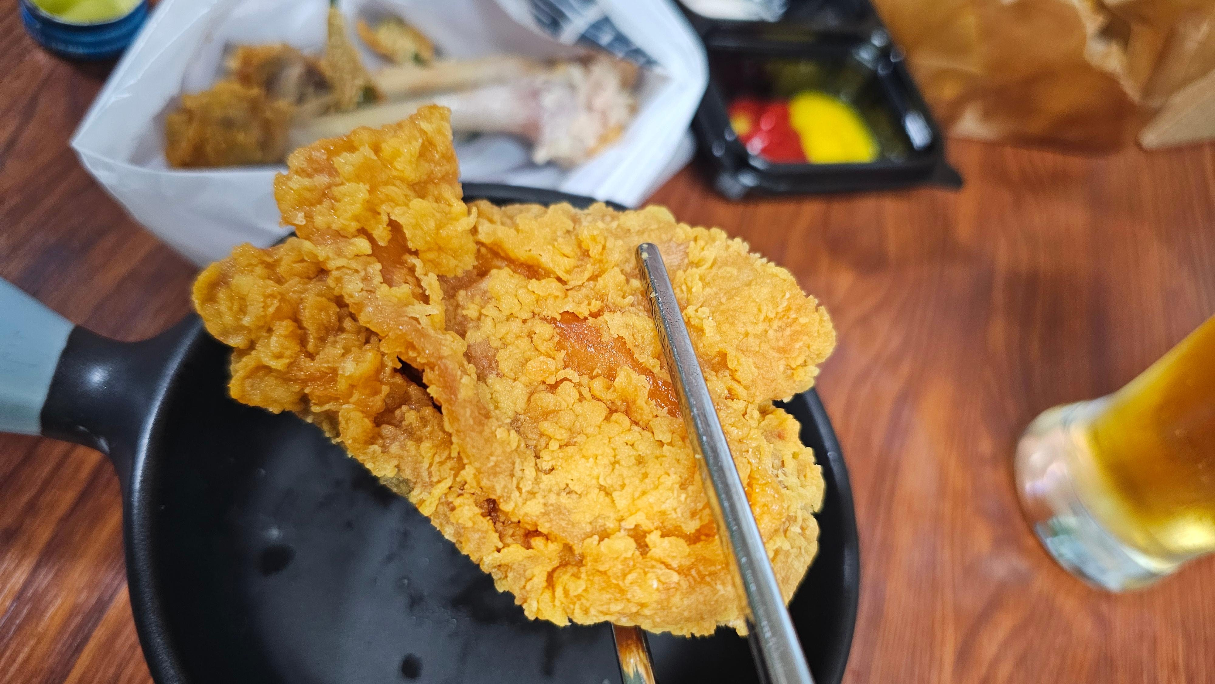 특히 약간 매콤한 시즈닝이 느껴지는 스타일의 후라이드!