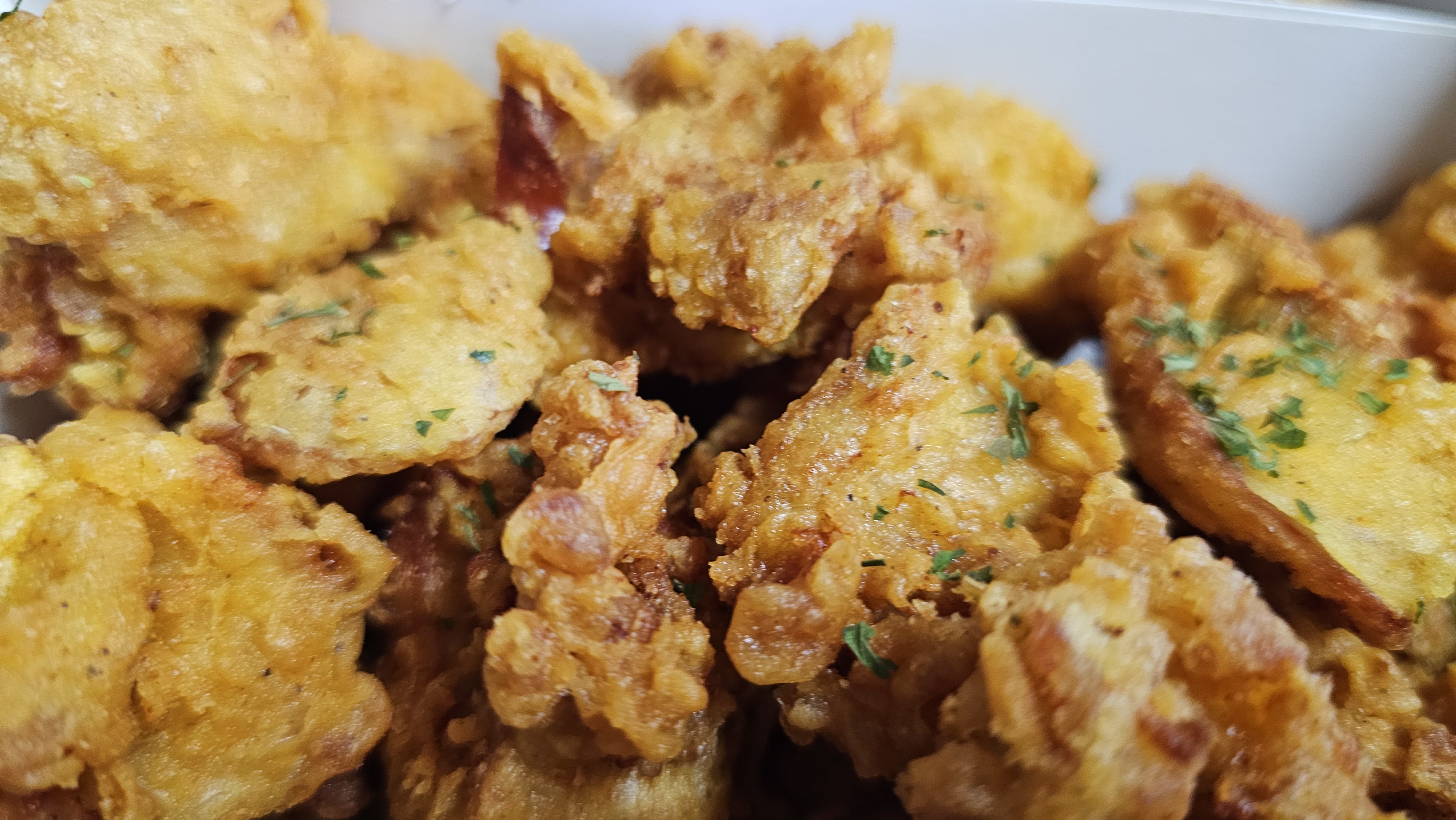 - 깐풍맵닭 : 이름 그대로 매콤합니다. 땡초랑 마른 고추가 잔뜩 들어가 있어 매운 향이 확 올라와요. 얼마 전 먹었던 푸라닭의 ‘일품깐풍’은 고급진 중화요리 같은 깔끔한 매콤함이라면, 야채통닭의 깐풍맵닭은 좀 더 투박하면서도 직접적인 매운맛이 치고 들어옵니다. 확실히 비교 포인트가 다르더라고요.